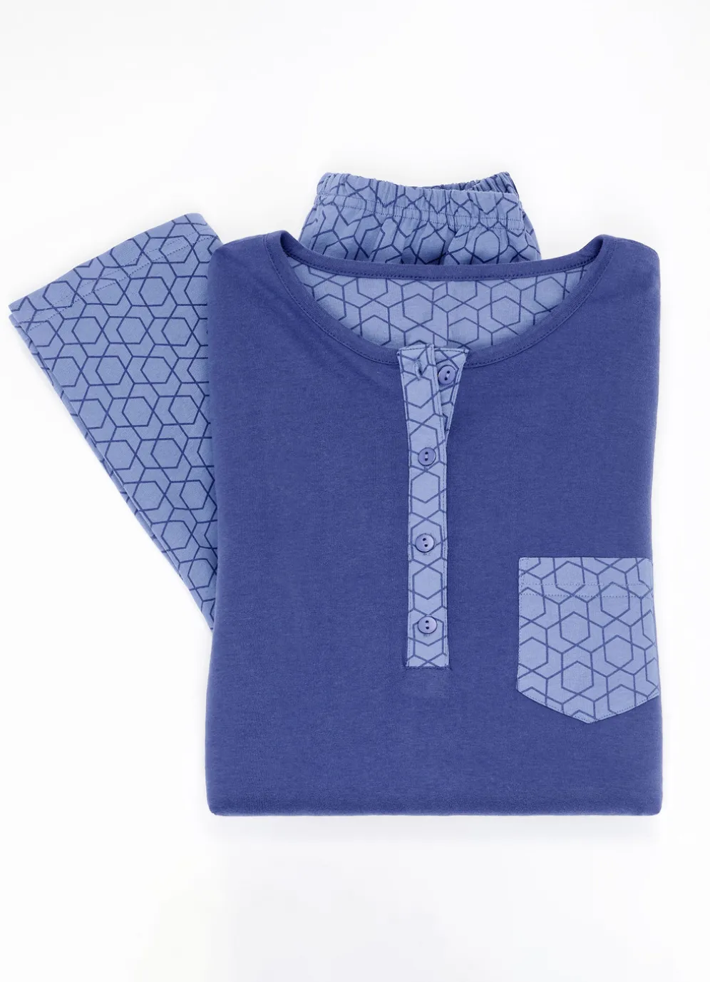Zweierpack Schlafanzüge mit Knopfleiste und langen Ärmeln in 1X Marine, 1X Anthrazit und in Größe 36.