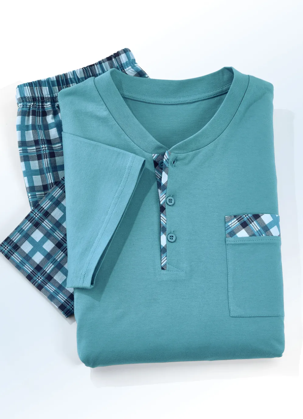 und aufgesetzte Brusttasche. Passend dazu die karierten Shorts mit Dehnbund.