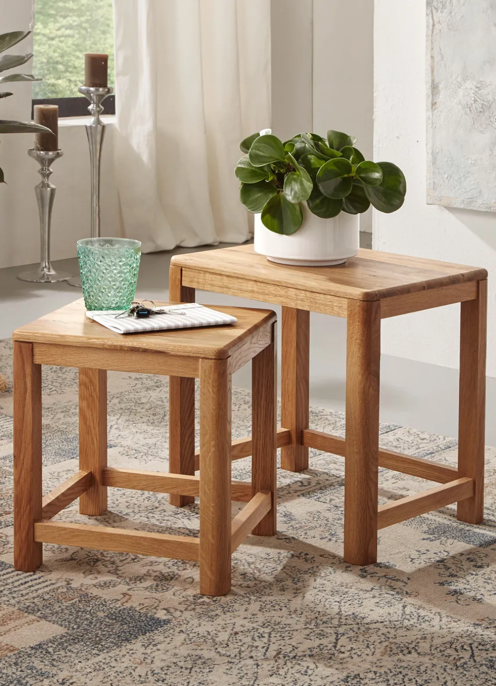 Zweisatztisch aus Massivholz in geölter Ausführung in Wildeiche.